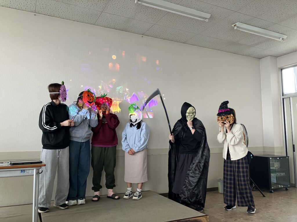 教員の仮装や、お菓子のプレゼントに笑顔があふれました。