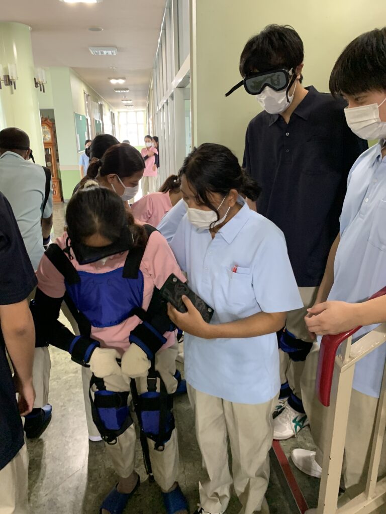 「高齢者体験」では、実際に高齢者疑似体験セットを装着し、視野の狭さや関節の動きにくさなどを体感しました。